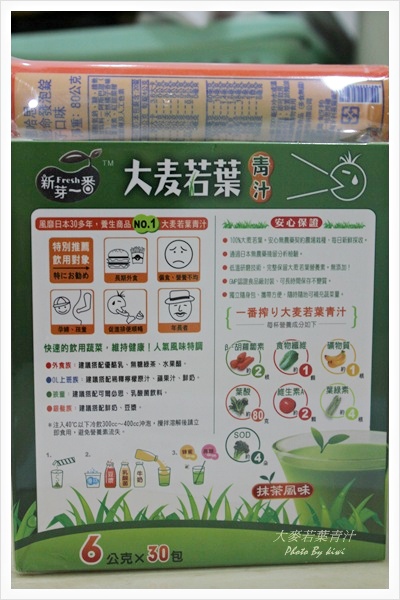這次拿到的大麥若葉蔬果酵素青汁內一共有30包每包含量有6公克盒上還有六大安心保證喔